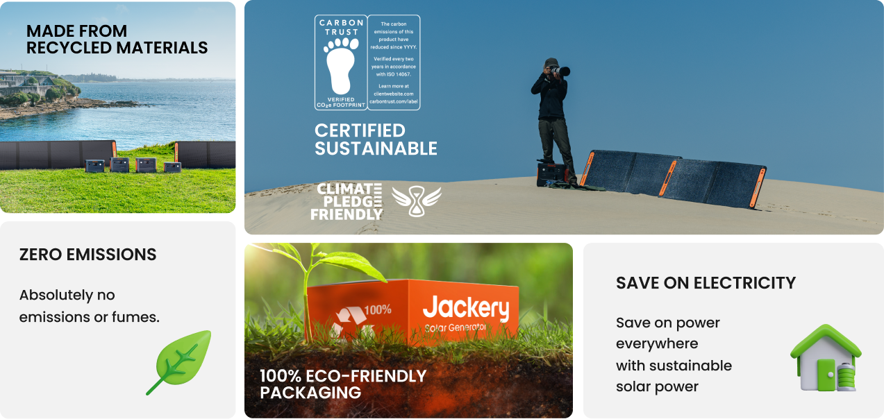 Jackery harnesses solar energy to provide clean, renewable power, reducing carbon emissions in the atmosphere.