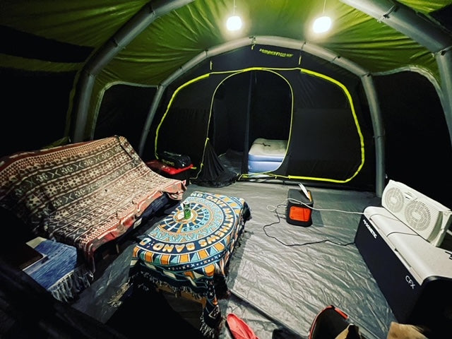 I use the Jackery battery system to power my Dometic freezer, phone, and other electronic devices. Prior to using Jackery in my tent, I used this solar power station and panels to keep my devices powered on five acres in Colorado that had no power supply.