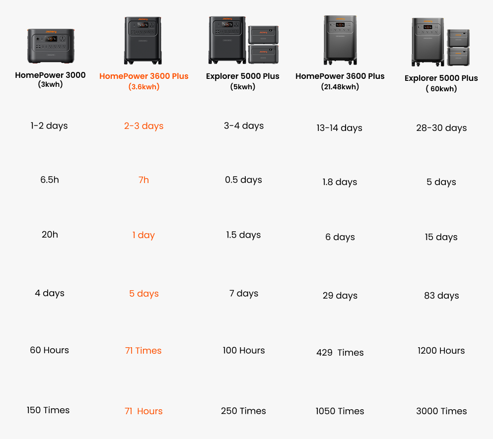 Select a Jackery power station and enter your appliance’s wattage to estimate the running time.