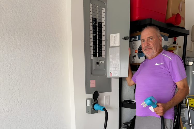 Richard had an electrician wire a special connection in his garage that links directly to his breaker panel. “When I hear a storm is coming, I plug in the Jackery, charge it to one hundred percent, and I’m ready,” he says. “We tested everything, and it all worked perfectly.”