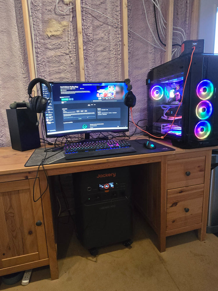 Today, James owns two Jackery Explorer 5000 Plus systems, four expansion batteries, and several Jackery Explorer 1000 for backup. One 5000 runs the household; the other powers the main circuits. “It literally runs everything,” he says. “Fridge, freezer, gaming PC, laptops, heater, TV, water pump.”