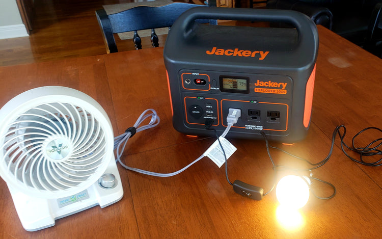 I've also got a little 12-volt DC fridge in Florida. Whenever I buy seafood from the shop, I use my little Jackery Explorer 240 to keep the seafood fresh on my way home. I also have many USB 12-volt LED lights that I can run forever. So, my primary backup strategy is charging a small, very efficient fan, lights, cell phone, and refrigerator -- and Jackery has got it all covered.