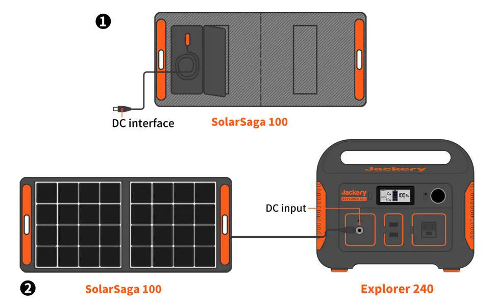 2. Connect the DC interface of SolarSaga 100 with DC input of Explorer 240