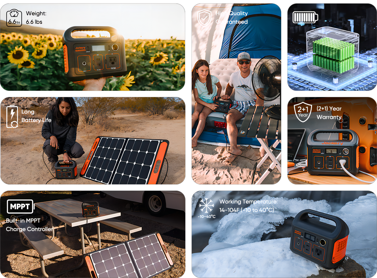 The Explorer 240 can be fully charged under straight full sun in 4.5 hours by connecting SolarSaga 100W solar panel.
