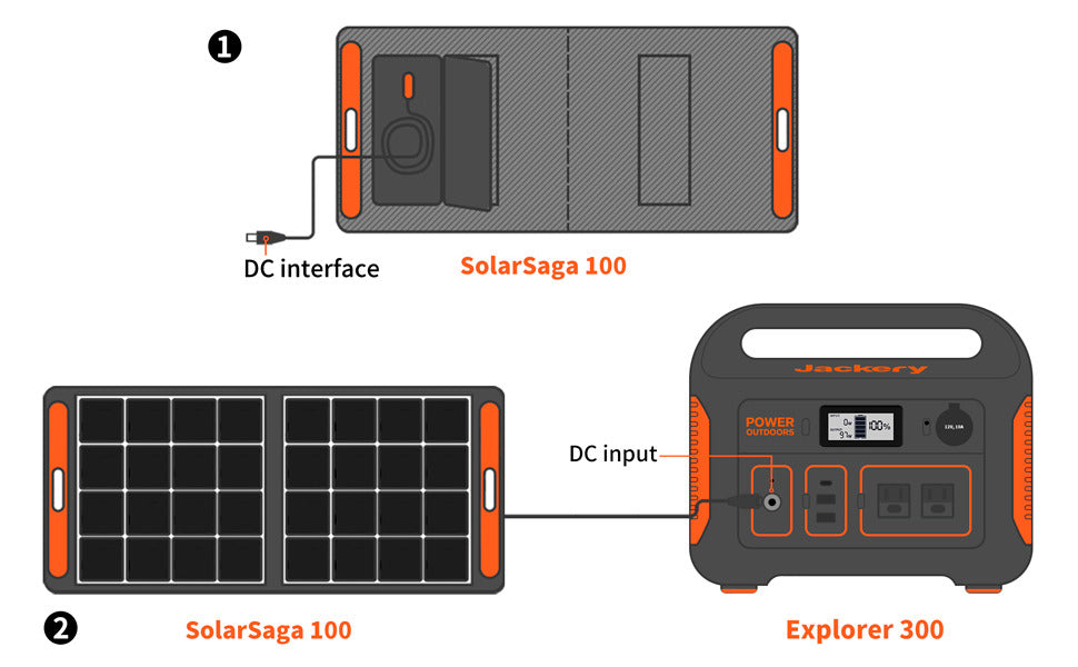 2. Connect the DC interface of SolarSaga 100 with DC input of Explorer 300