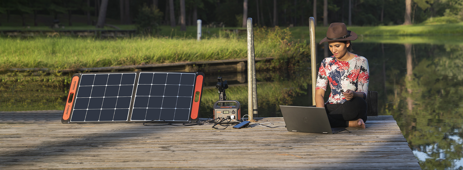 The Explorer 300 can be recharged under straight full sun in 3.5 hours from 0-80% by connecting a SolarSaga 100W solar panel.