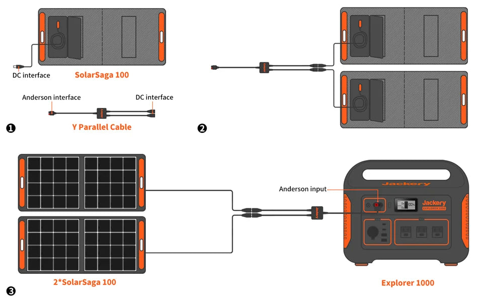 2. Connect the DC interfaces of 2*SolarSaga 100W with the Y Parallel Cable;