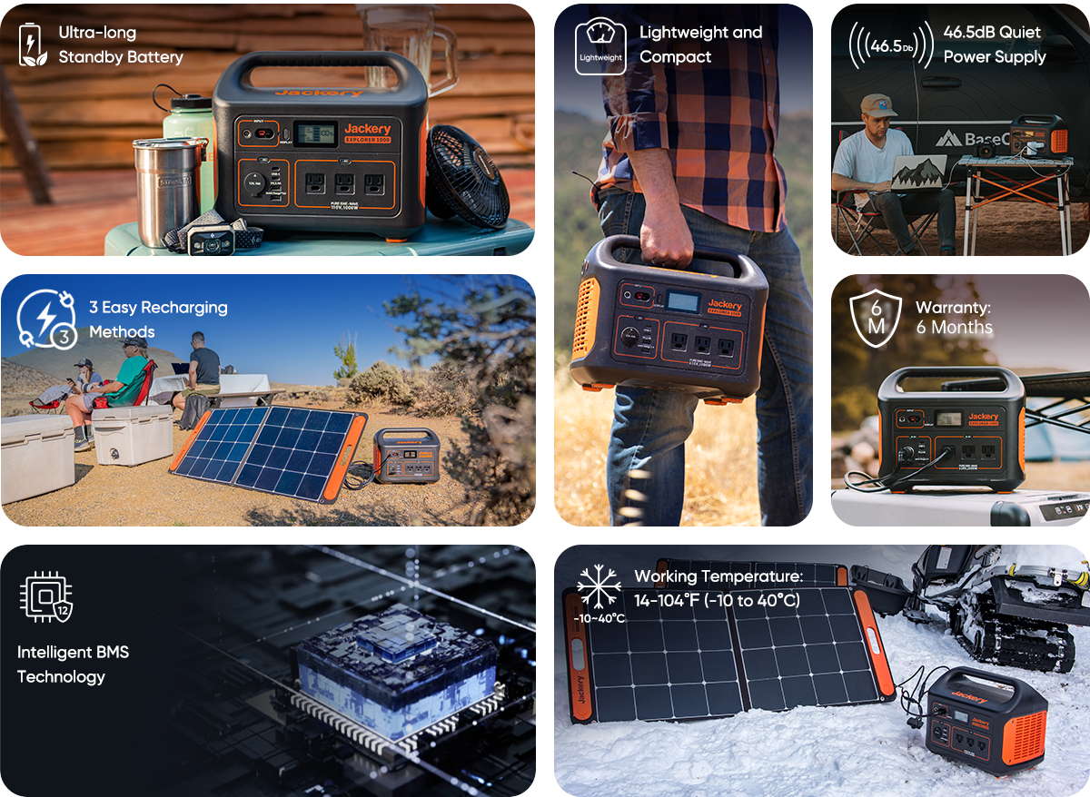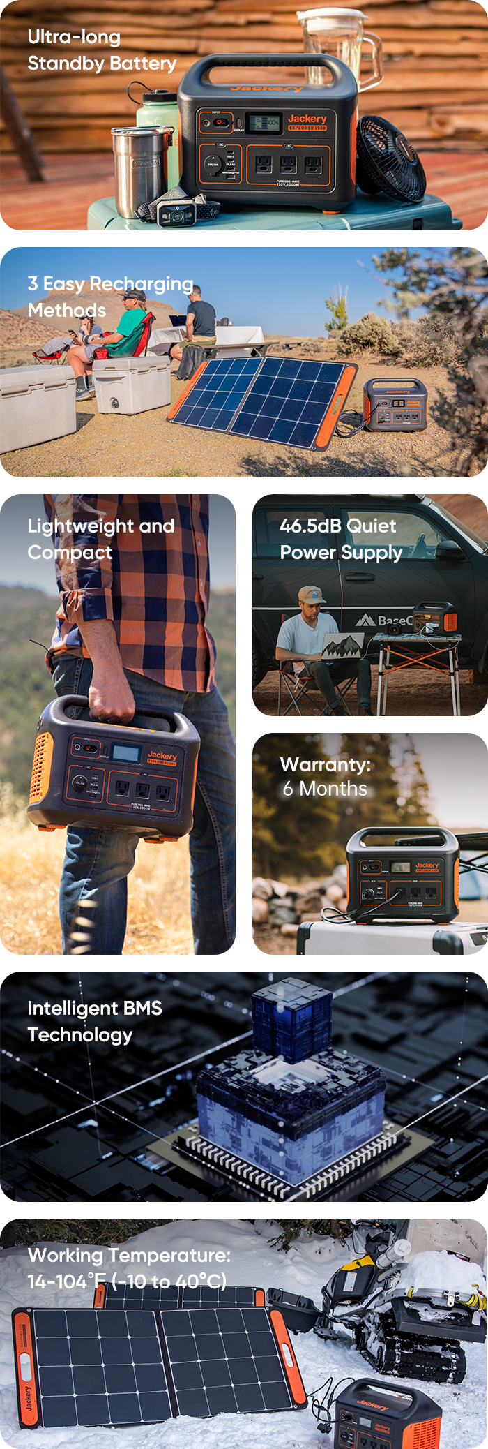 The Explorer 1000 can be quickly fully recharged within 8 hours by connecting two SolarSaga 100W solar panels together with an adapter cable (package included).