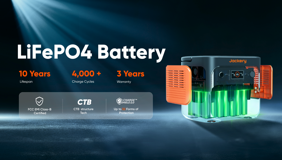 - Quiet, eco-friendly energy with next-gen LiFePO4 battery lasting over 10 years.