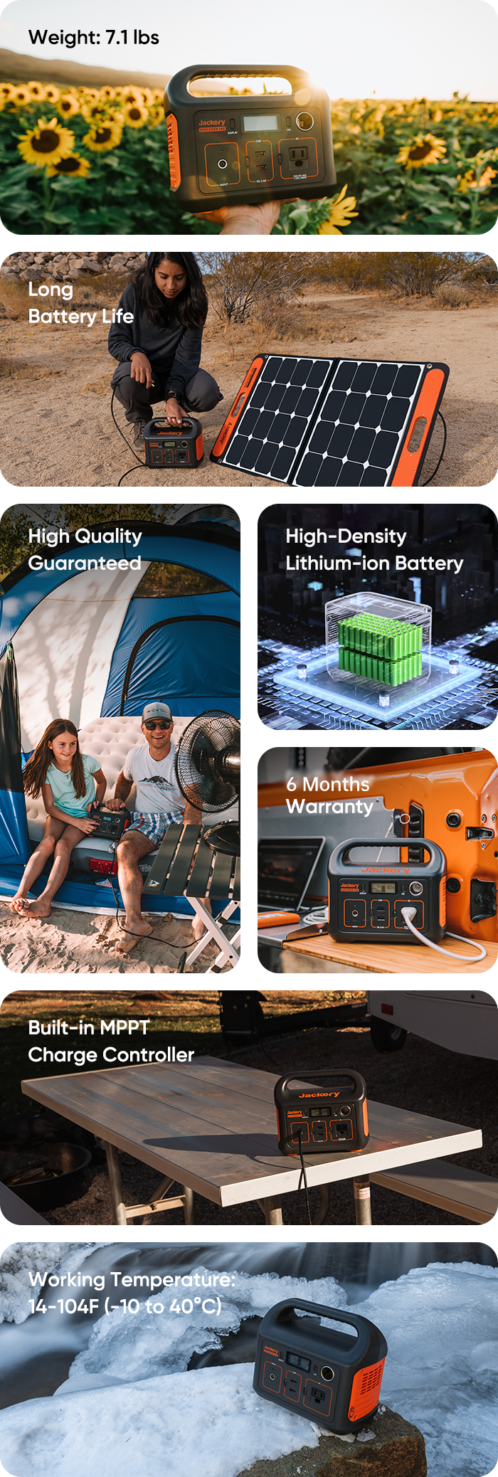 The Explorer 240 can be fully charged under straight full sun in 4.5 hours by connecting SolarSaga 100W solar panel.