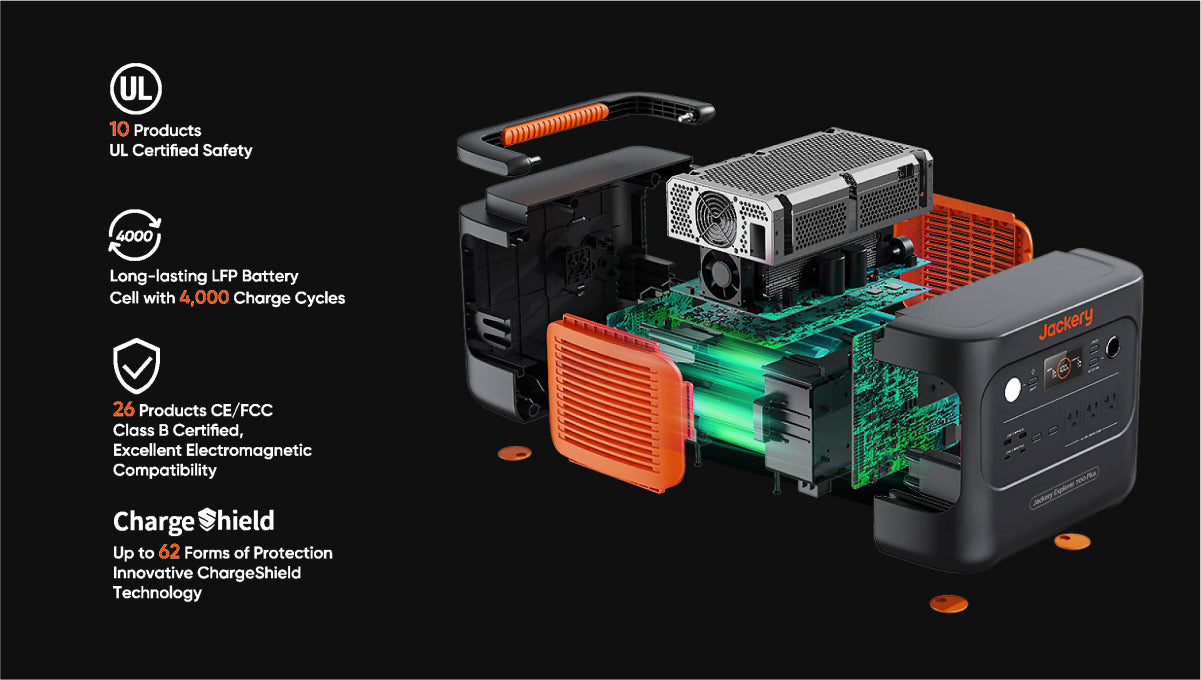Jackery 700 Plus weighs 22 lbs, has a capacity of 680Wh, an output power of 100W, supports fast charging for multiple devices simultaneously, and offers various charging methods, making it convenient for outdoor camping.
